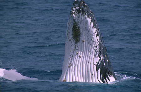 A very young calf pushes up to eyeball the strange beings aboard 'Karma'.