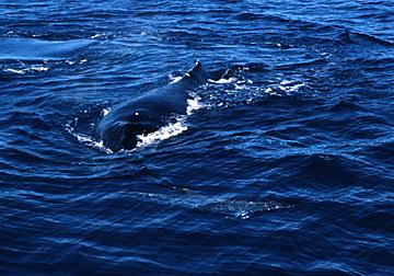 ![]() RIGHT: Each whale fluke is unique in size, shape, markings and particularly the serrated trailing edge. This allows researchers to use it like fingerprints to identify individual whales |